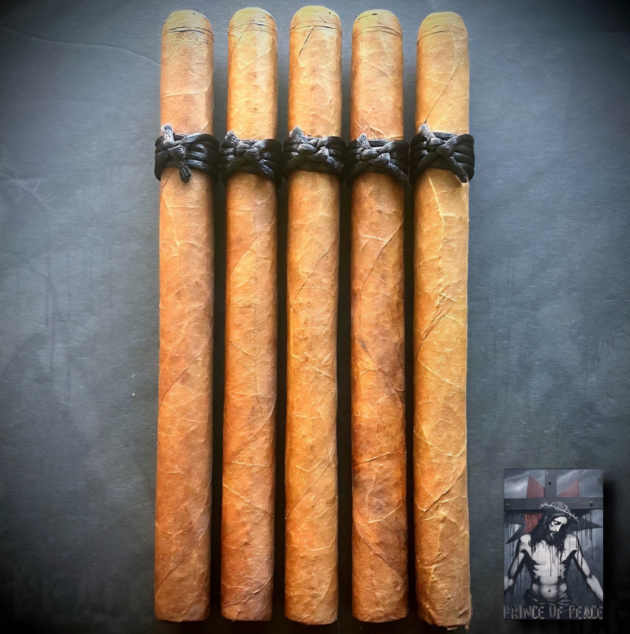 Blessed Leaf PRINCE OF PEACE is a full-bodied, full-strength 7x42 lancero. Wrapper is a jaw-dropping 12-year-aged Colorado wrapper. Binder and filler tobaccos will remain a closely guarded secret. But all tobaccos are 6-13 years aged!