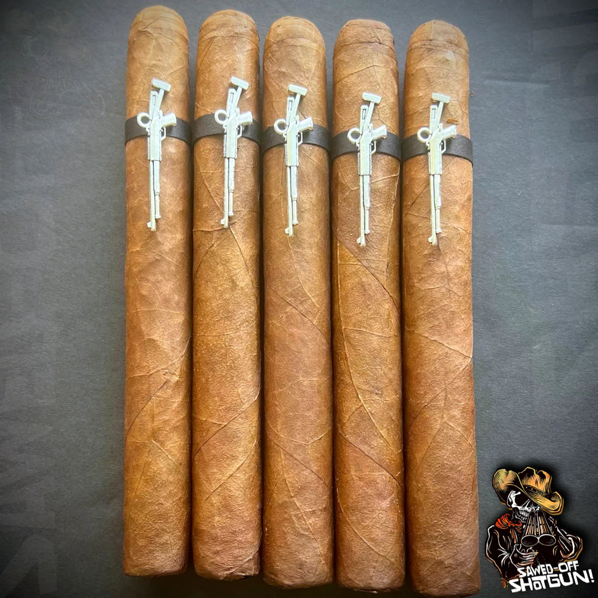 SAWED-OFF SHOTGUN XQ is a full-bodied, med/full strength 6.5x48 short churchill. Wrapper is a luscious Corojo 99 Rosado leaf. Fillers are a closely guarded secret...but they are all 7-13 years aged!