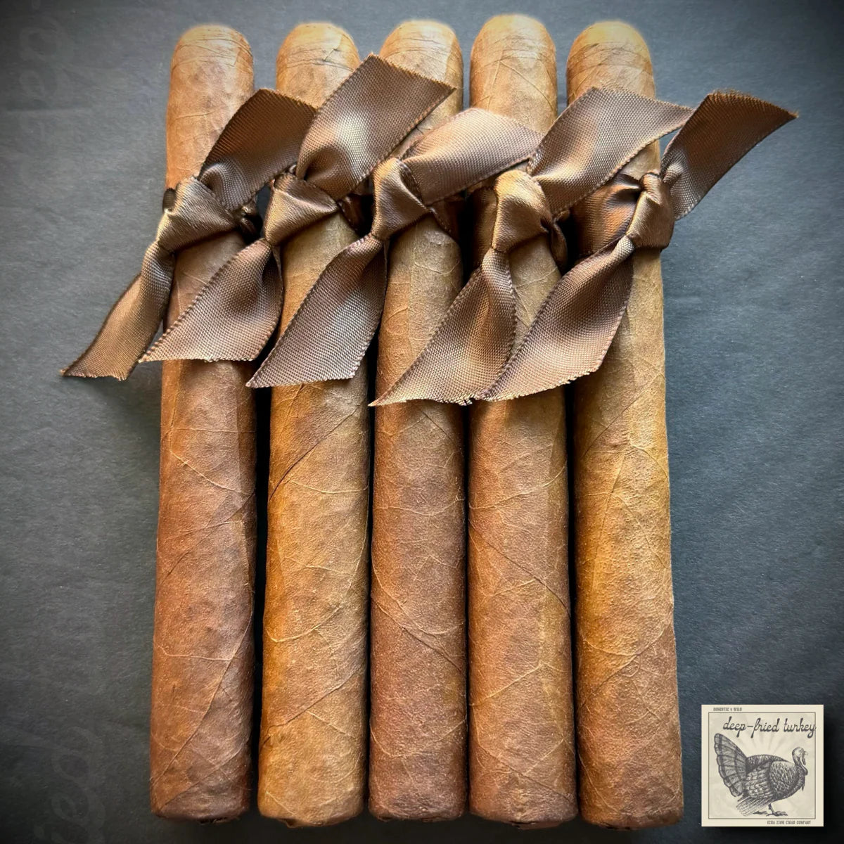 DEEP FRIED TURKEY ‘25 is a is a full-bodied, med/full strength 6.25x48 Corona Gorda. Wrapper is a flawless and buttery Corojo 99 claro leaf. (Just look at that gorgeous picture!) Fillers will remain a very closely guarded secret...but they are all 5-13 years aged!
